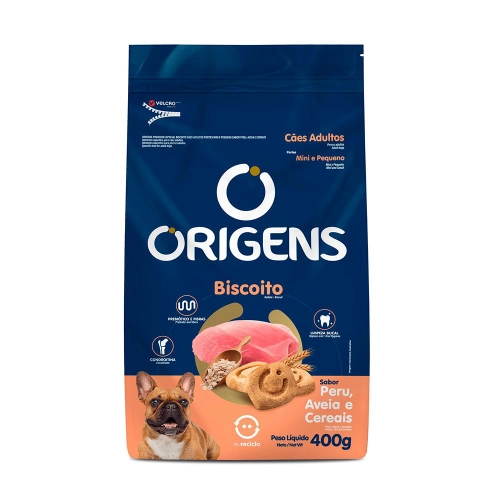 Biscoito Origens Peru, Aveia e Cereais Cães Adultos Porte Mini e Pequeno 400g